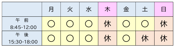※診療予約の受付は平日17:30、土曜11:30までとなります